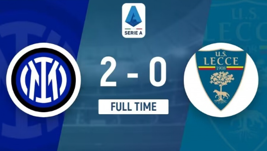 全場(chǎng)比賽結束,國際米蘭2-0萊切。